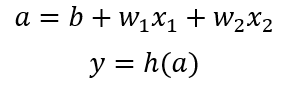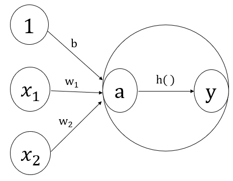 가중치 신호를 조합한 결과가 a라는 노드가 되고, 활성화 함수 h( )를 통과하여 y라는 노드로 변환되는 과정을 의미한다.