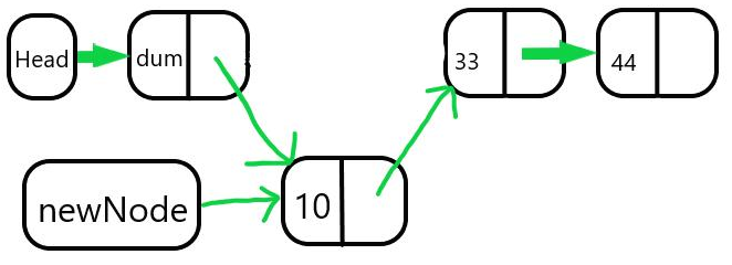 우리는 통상 뒤로 줄을 서듯 줄줄히 붙을 것이라 생각하지만 이 코드에서는 dummy 노드 뒤에 newNode가 붙게된다.